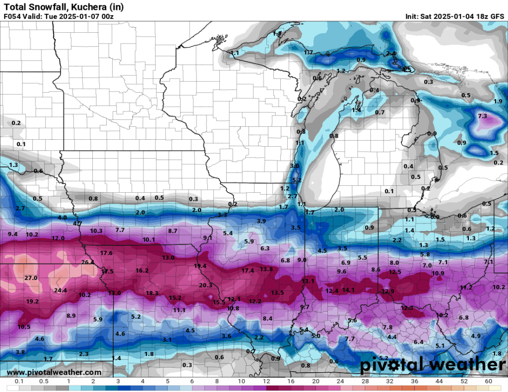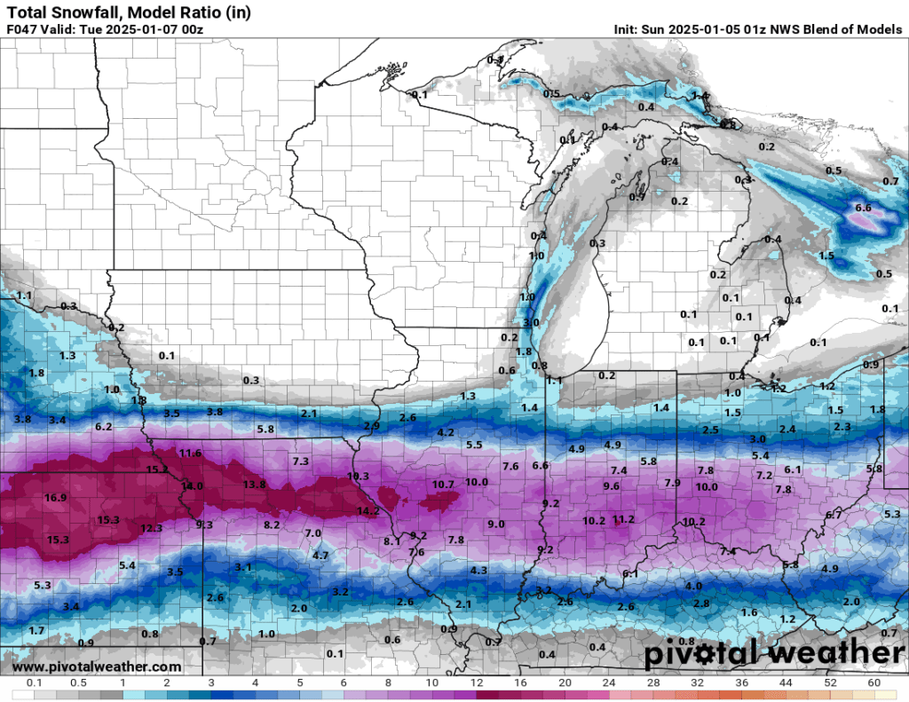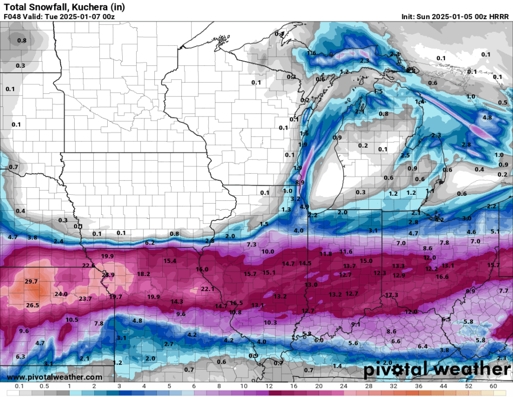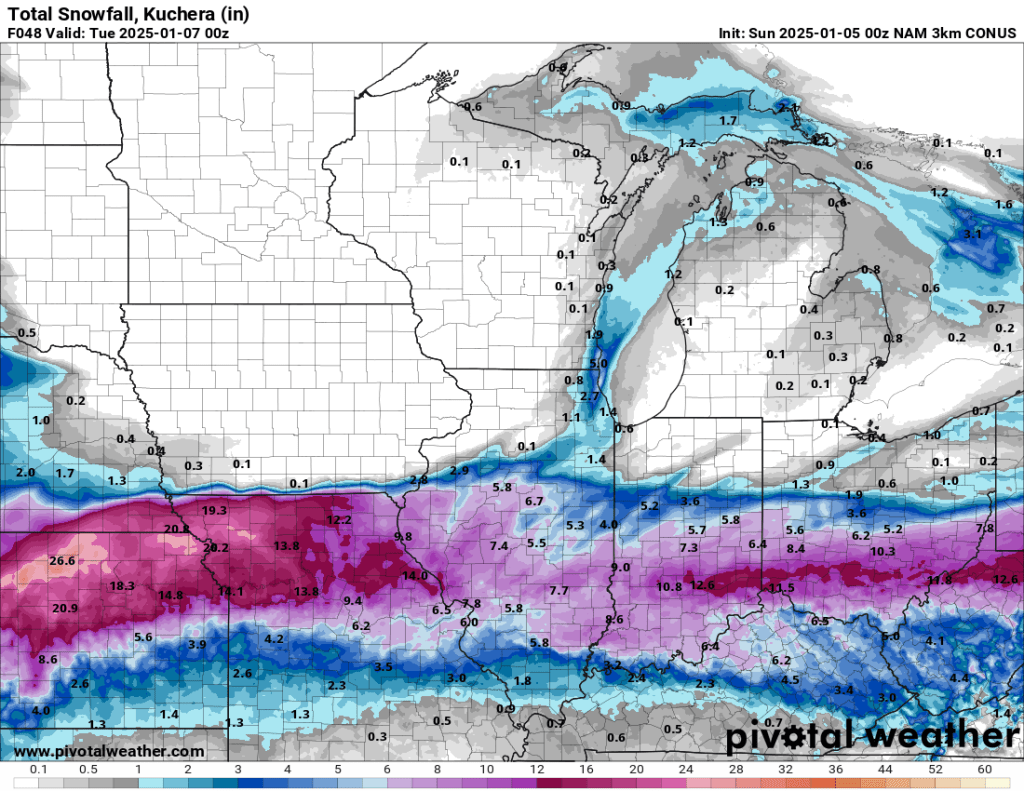 All eyes will be on central and southern Indiana tomorrow and Monday, and I know many of us—myself included — have friends and family downstate who are at risk of heavy snow, so I’ll give a quick update.