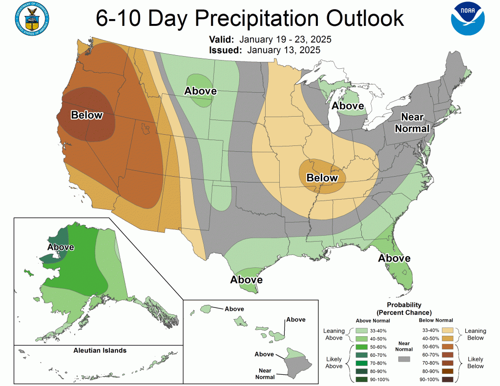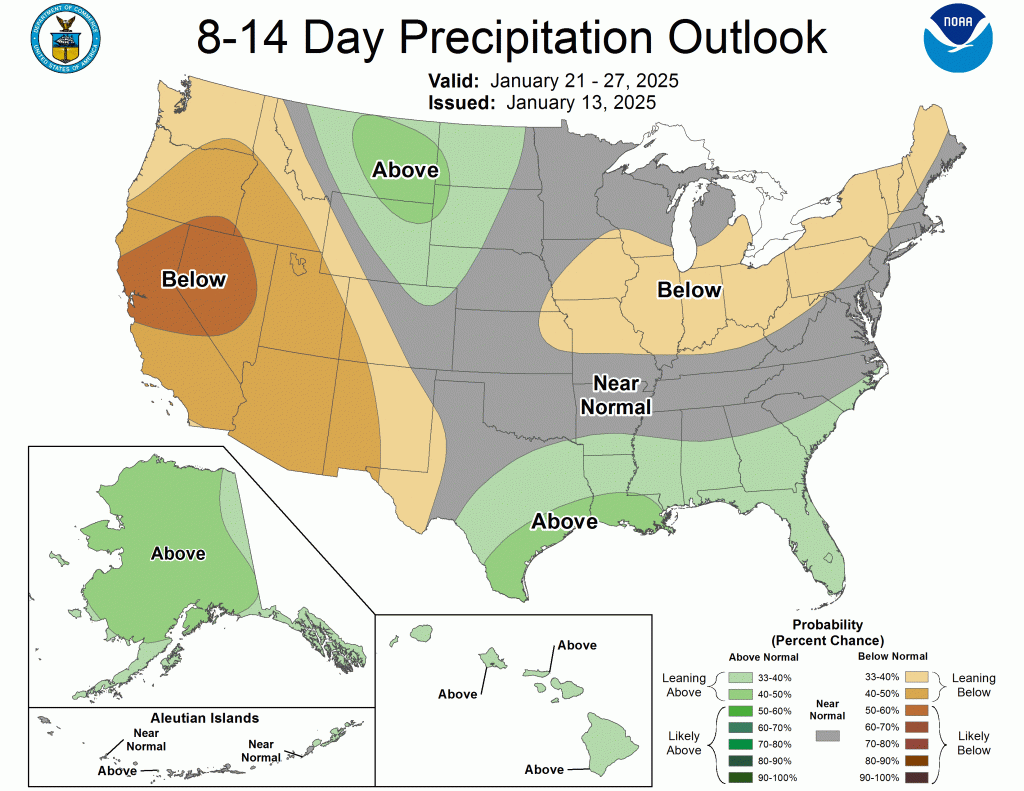 The precipitation outlook for both timeframes is unsurprisingly leaning dry for our area.