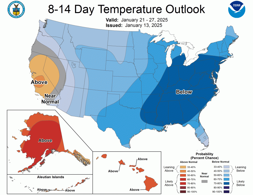The latest CPC outlook has maxed out the chance of below-normal temperatures in our region in the 6-10 day timeframe.