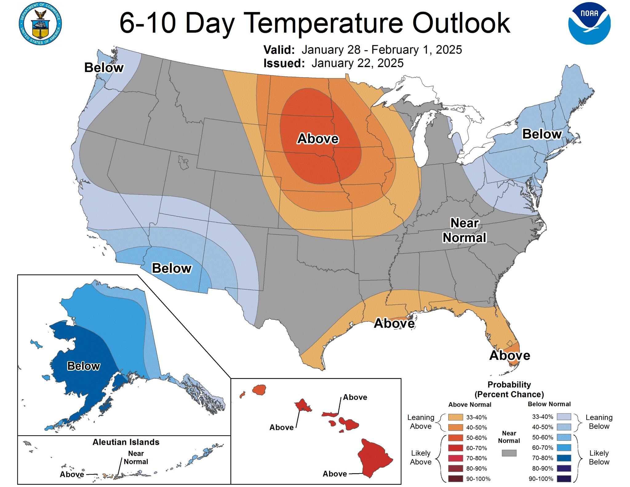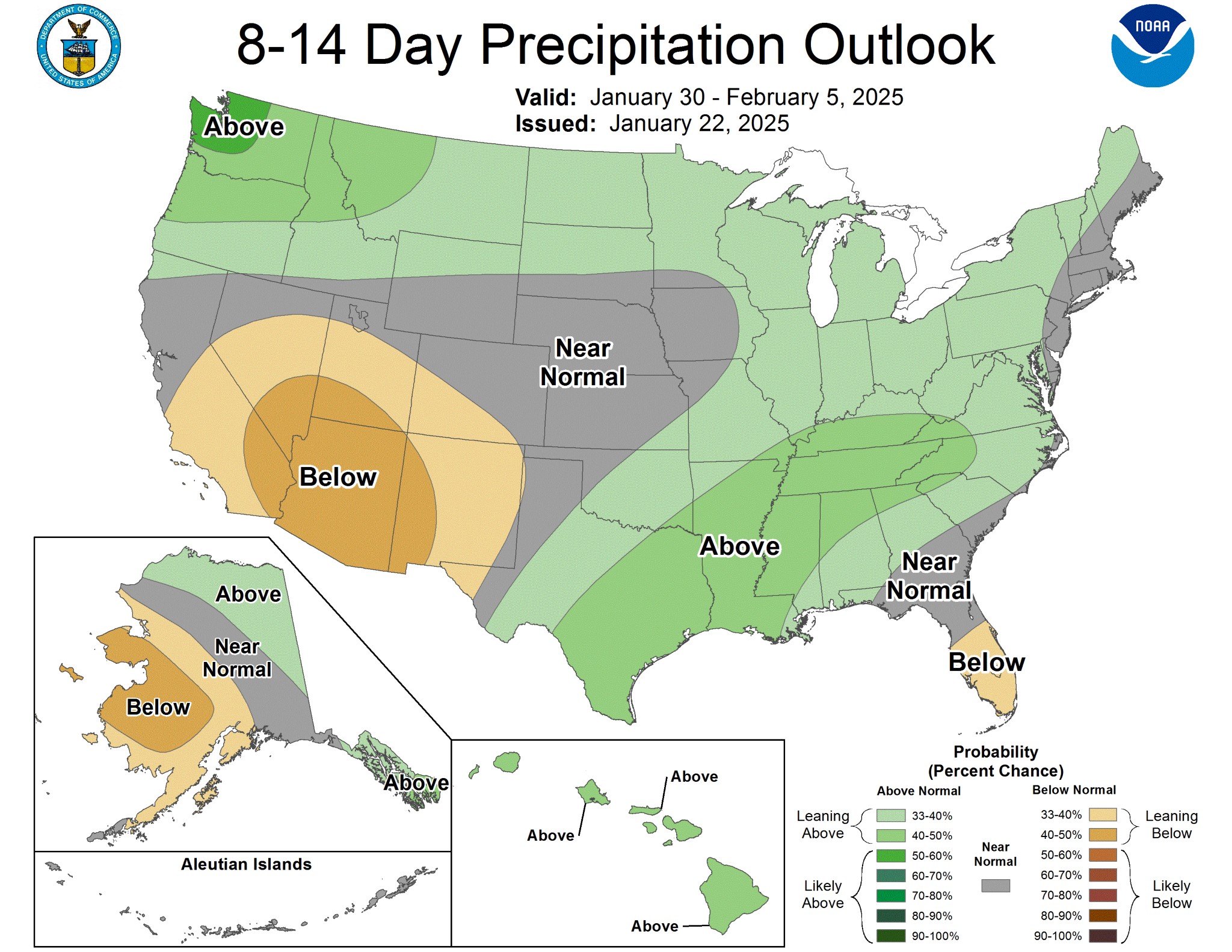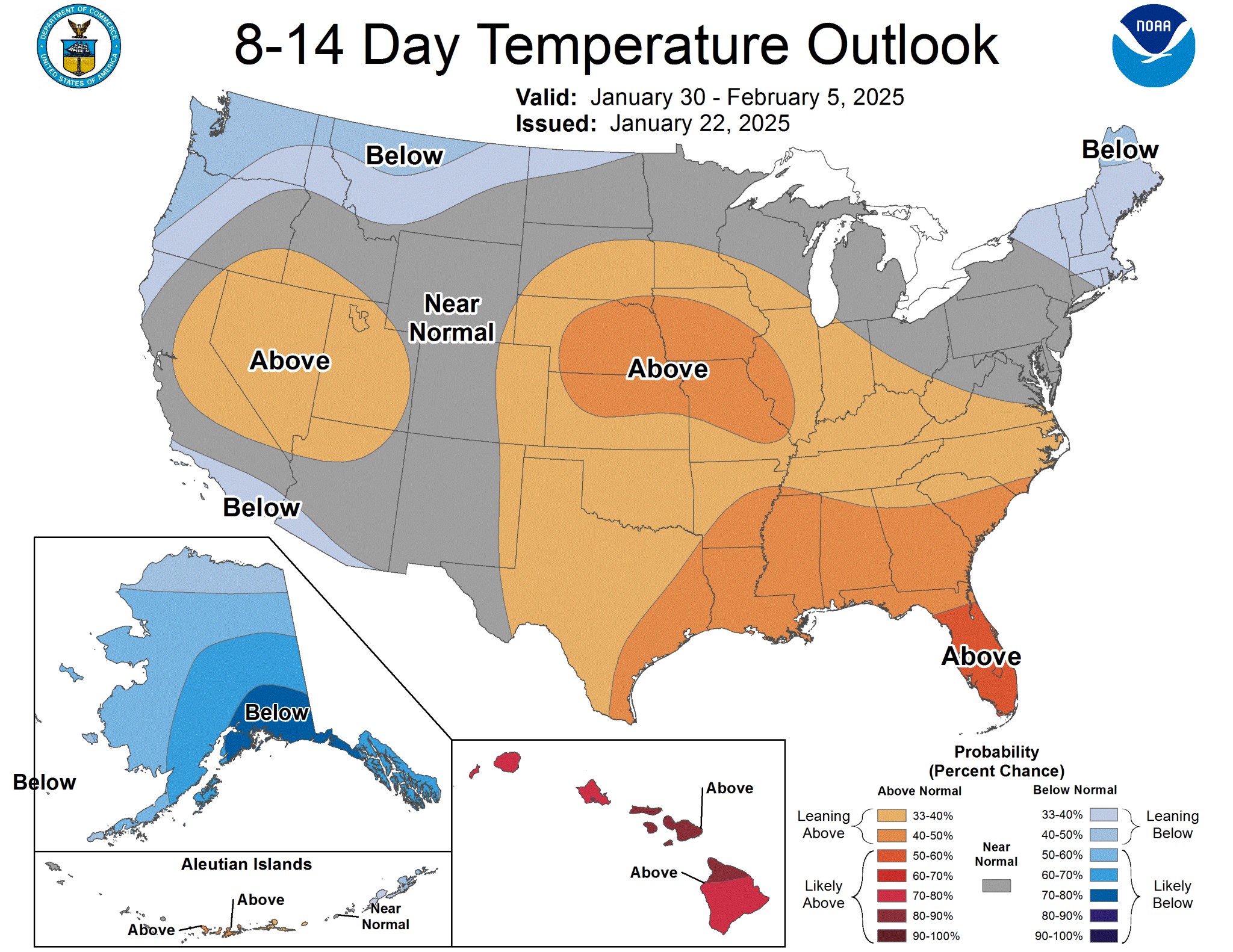Looking even further down the road, there is some discrepancy between major models in terms of temperature. One model has been a little bullish on warmer weather, though the last few runs have been cooler. The other model is more bullish on cold air returning, with another chance for subzero temperatures in late January or early February. The result is a relatively down the middle of the road temperature outlook in the 8-14 days range. The pattern should become more active as we head into February as well.
