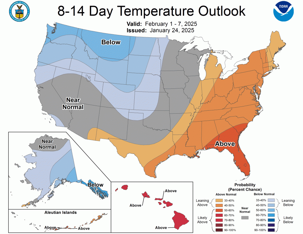 The warm weather is also expected to last into the 14-day range.