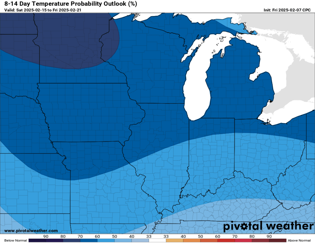 We’ve been warm overall for the last few weeks, but that will change over the next two weeks. In the temperature department, we will soon be trending below normal again. I don’t see subzero temps in the next two weeks, but we could drop into the single digits at times overnight.