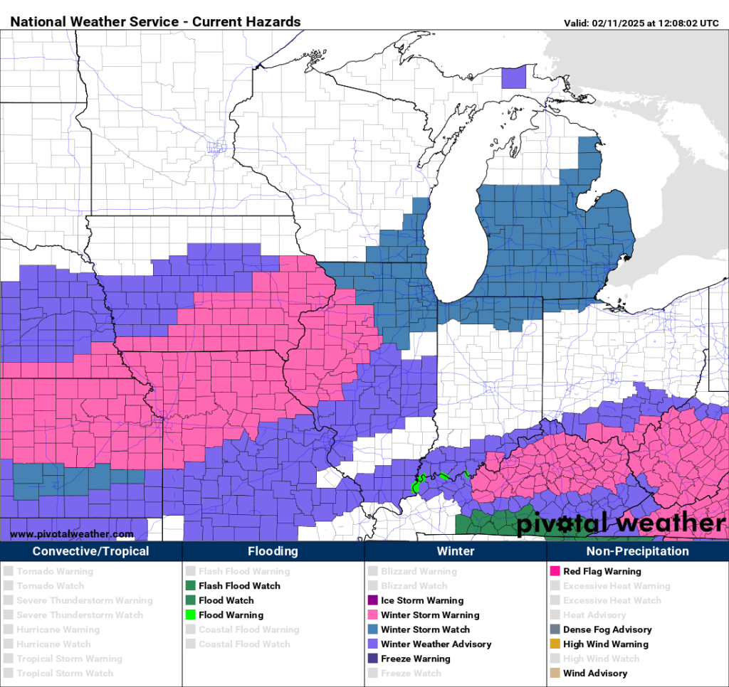 Our local NWS office mentioned there being enough confidence for a low-end Winter Storm Watch for the northwest edge of our area. However, confidence in a Winter Weather Advisory for most of the remaining counties was too low early this afternoon—but I suspect we will get one tonight or tomorrow. We didn’t get a Winter Weather Advisory; we got a Winter Storm Watch. The greatest likelihood of reaching winter storm-level criteria remains to our northwest, but significant travel impacts are expected locally nonetheless. If yesterday’s forecast pans out, we’d see things start as sleet and freezing rain. This would lower snow totals but create an initial layer of ice that would eventually be covered with a few inches of snow. We would see less sleet and ice and more snow if more recent runs were verified.