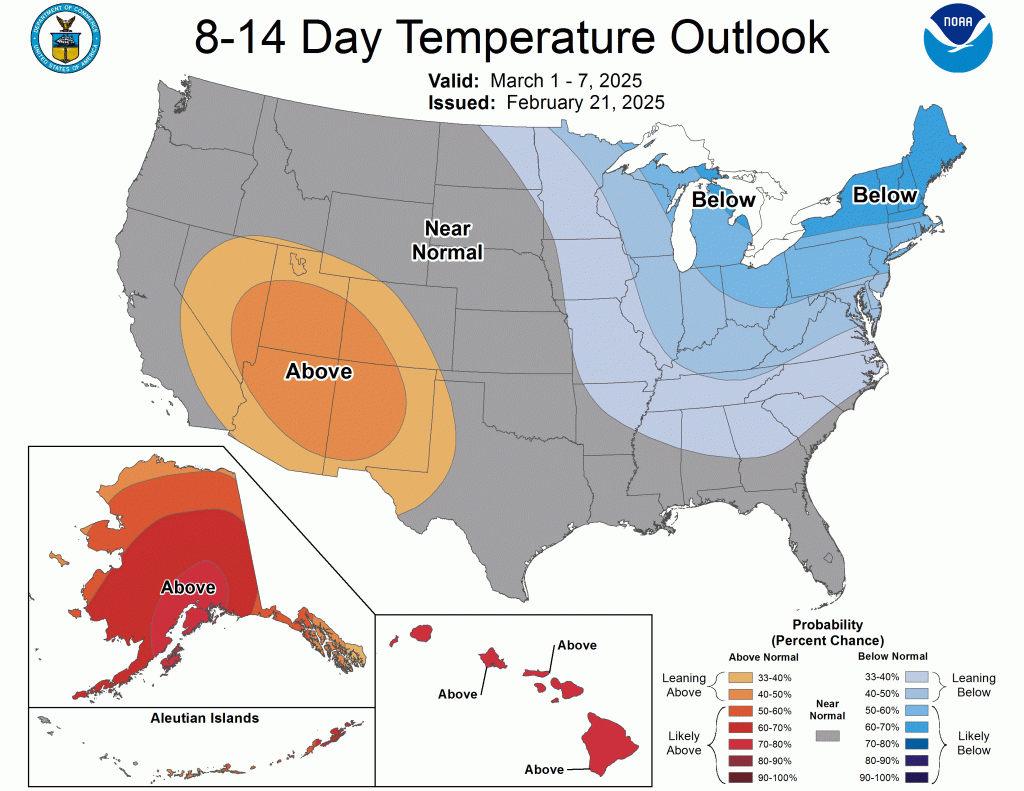 Okay, back to the week ahead. While the next 5-7 days look warmer than usual overall, the latest CPC outlooks tell us that we shouldn’t expect it to last much longer.