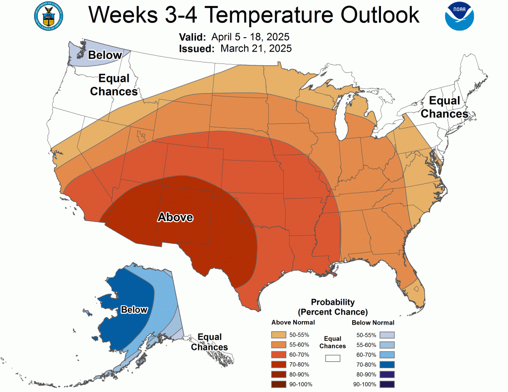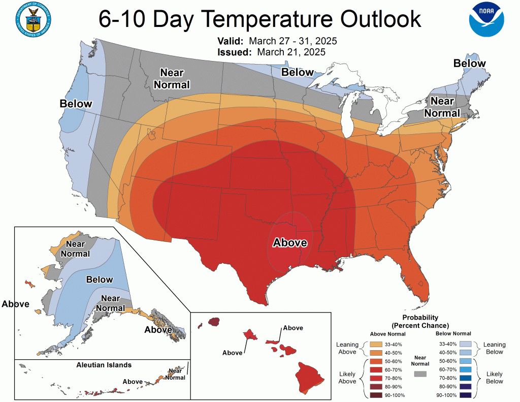 Looking ahead to the rest of March and early April, our medium—to long-range signals indicate that the warm air will continue for a while.