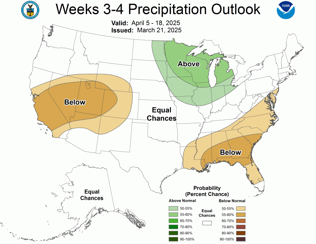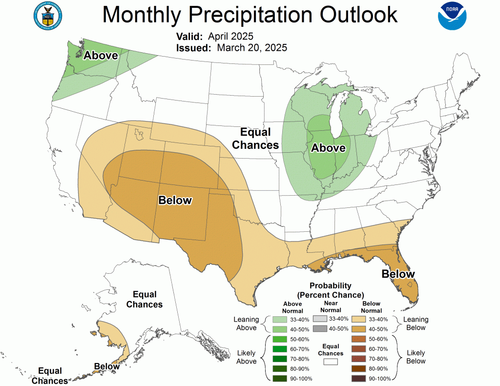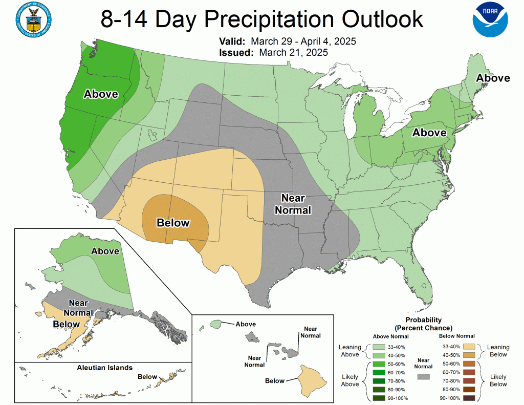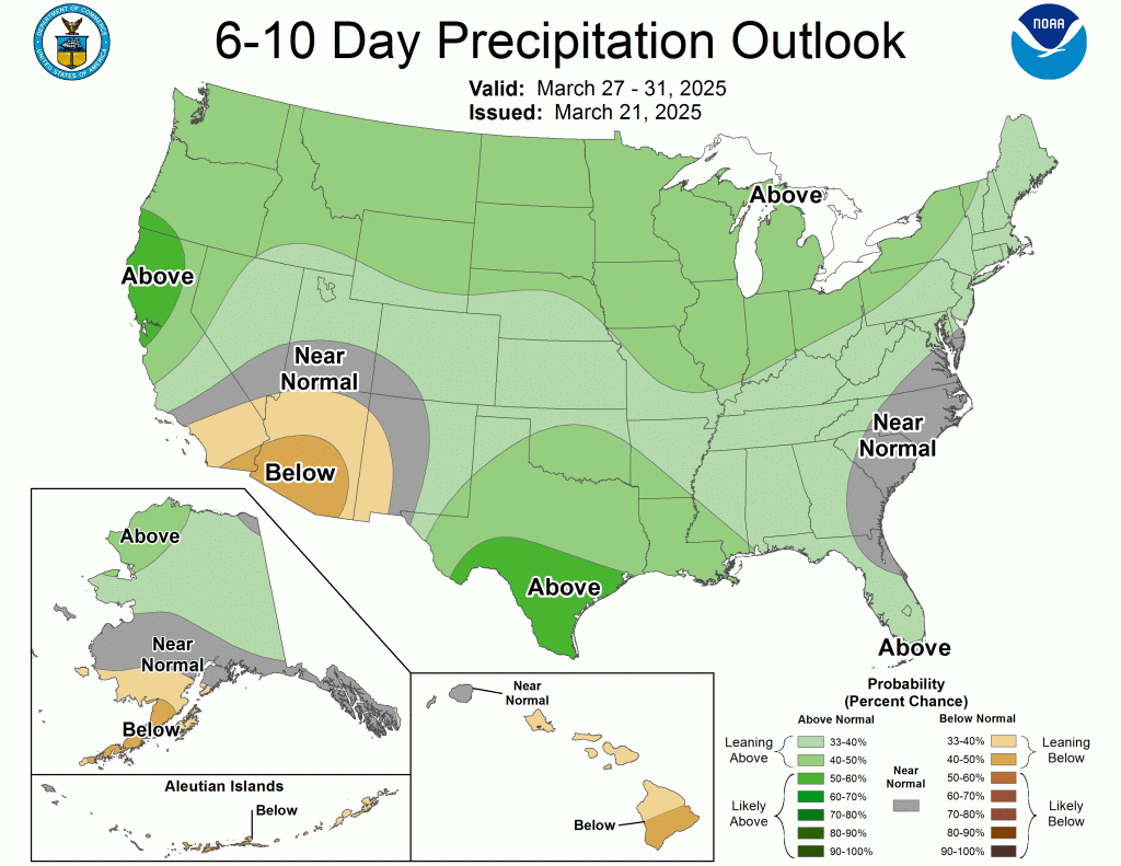 The theme for precipitation for this entire outlook, which runs from next weekend through April, is above normal.