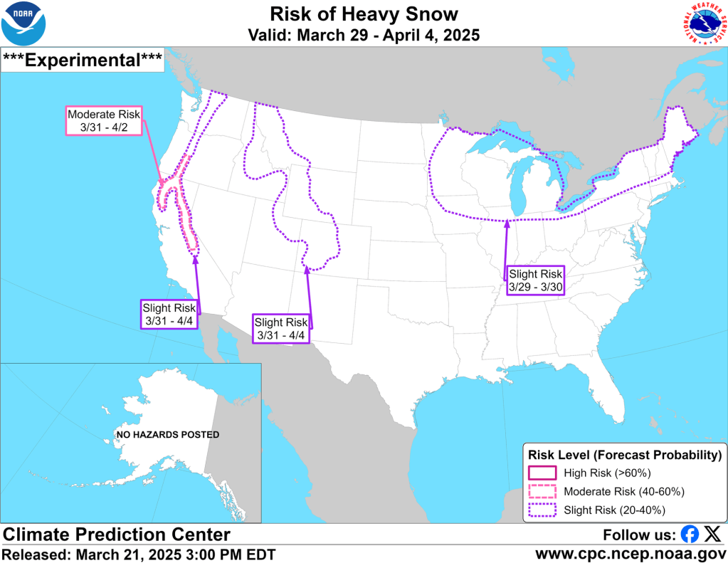 One caveat: the latest 8-14-day hazard outlook brings a slight risk of heavy snow to our doorstep at the end of March.