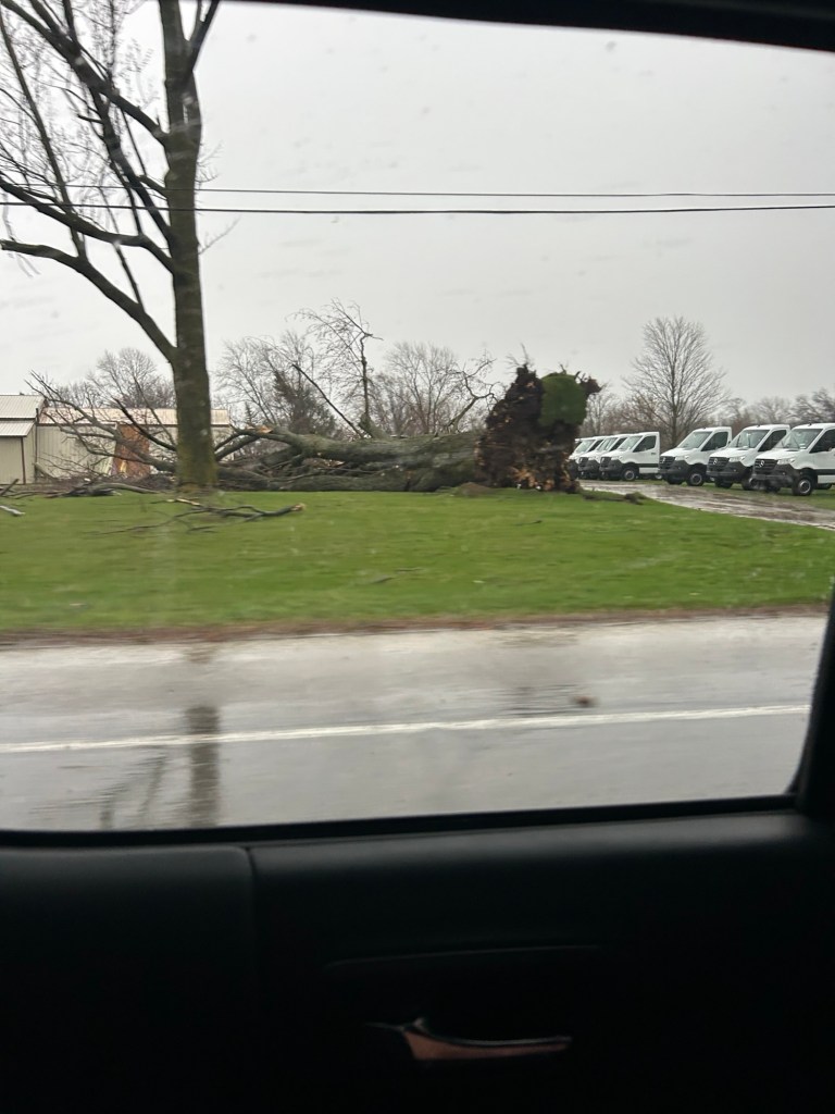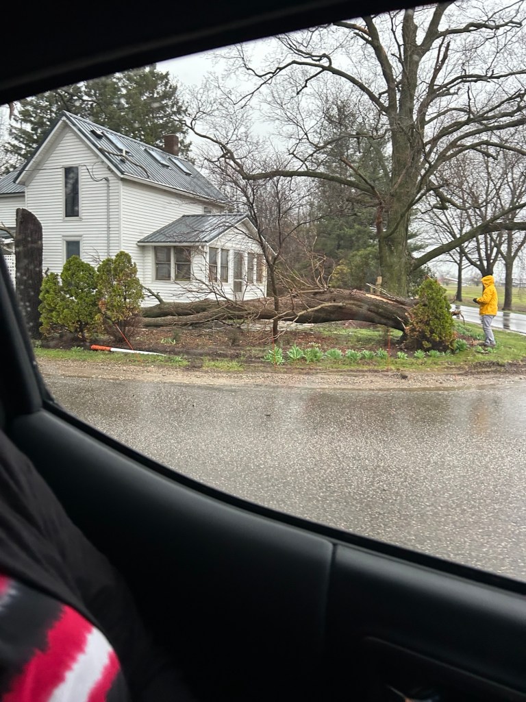 We didn’t see much in the way of supercell development as storms quickly congealed into a single line called a squall line, bow echo, or a QLCS (quasi-linear convective system). These QLCSs often produce widespread strong to severe wind gusts. They continually bubble out in the direction they are traveling and can twist and turn like eddies in a river. This is where you can get the other culprit often found in a strong QLCS—a QLCS tornado. These tornados are generally short-lived, on the weaker end of the enhanced Fujita scale, and frequently impossible to see as they are usually rain-wrapped. We had widespread wind damage, and I wouldn’t be surprised to hear about a few QLCS tornados across northern Indiana.