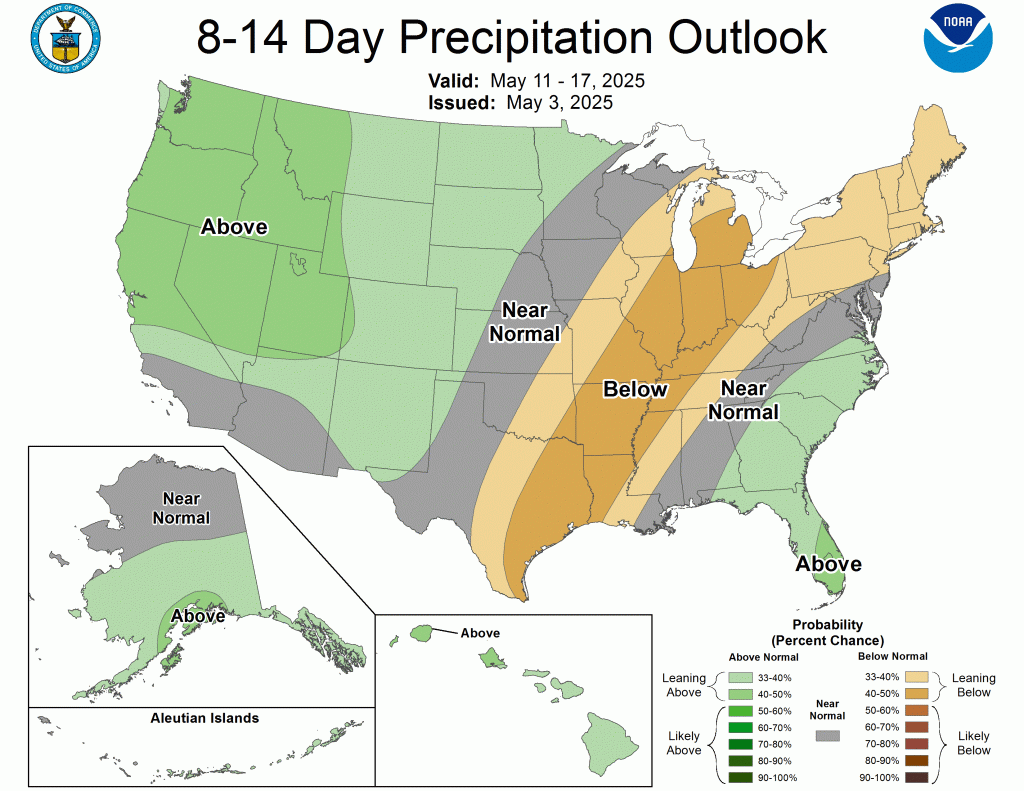 It doesn’t look like it now, but a potentially extended dry spell is expected right around the corner. And while we will be cool for the first half of this week, the bulk of the next two weeks look warm.