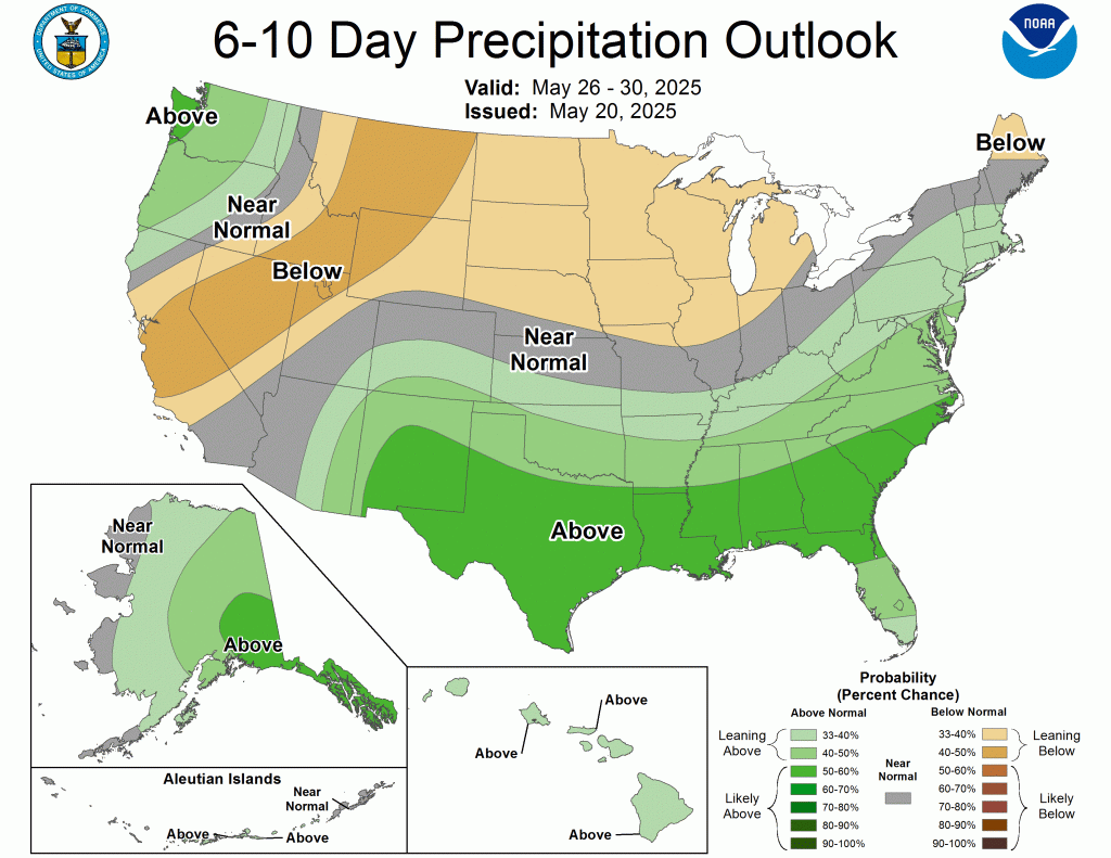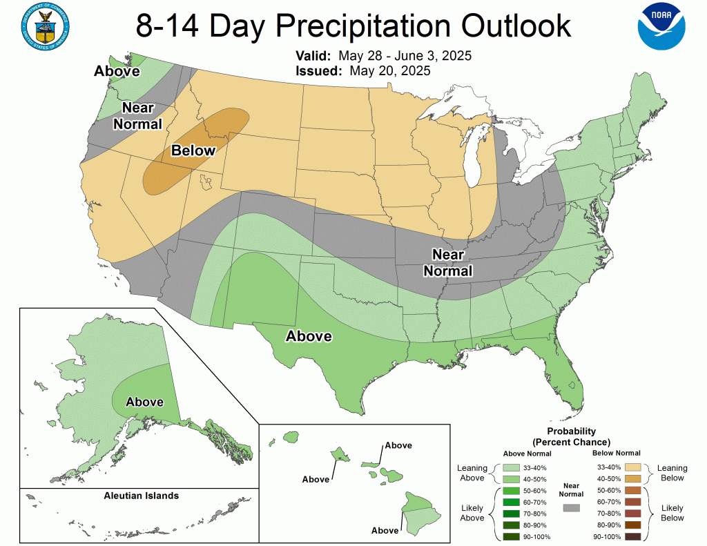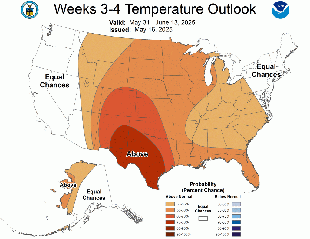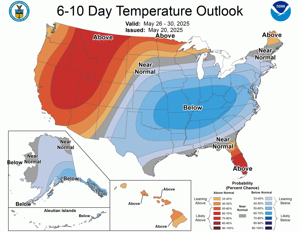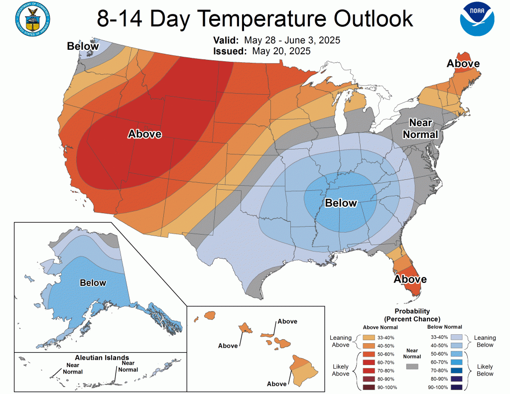 Cool weather will likely continue through the end of May. The latest CPC outlooks strongly favor below-normal temperatures in much of the Great Lakes.