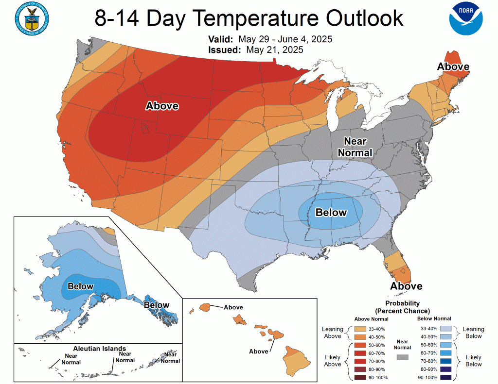 Yesterday’s CPC outlooks finally show a break from the cool weather looming in the 8-14 day range. We will likely enter a relatively dry stretch over the next two weeks as well.