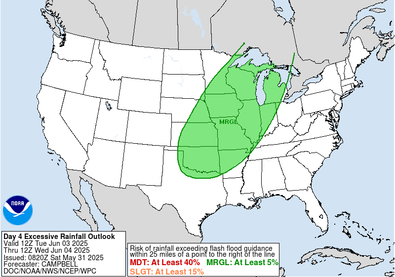 More sun and warmer tomorrow. The beginning of next week still looks very warm. By midweek things look more unsettled with multiple chances for showers and thunderstorms. The WPC already has us in a slight risk for excessive rainfall Tuesday and Wednesday—something to keep an eye on.
