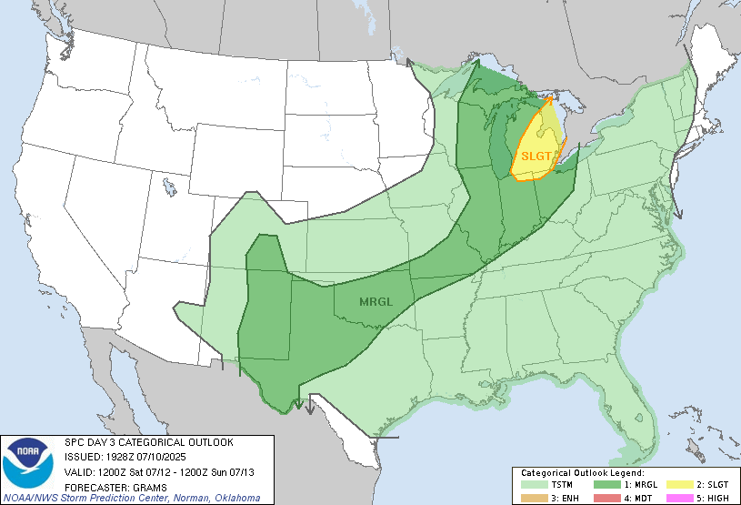 Original Post: The Storm Prediction Center has maintained a slight risk of severe weather for a large portion of the Great Lakes tomorrow.