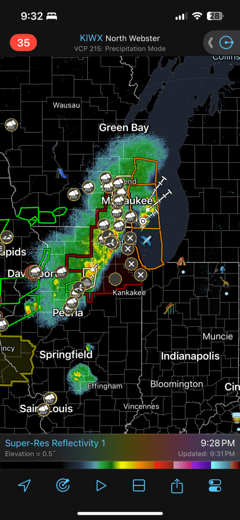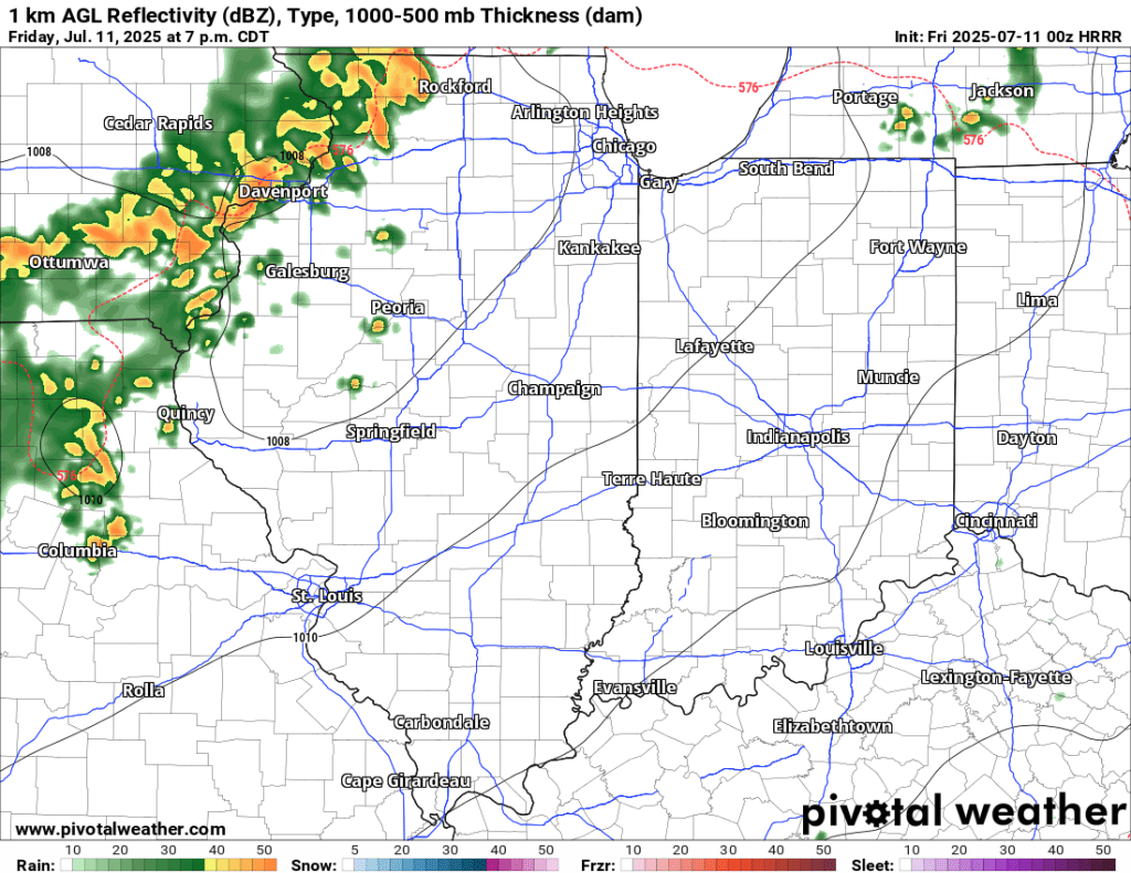 A few storms are also about to cross the Indiana/Illinois state line. These are mostly expected to die out before they reach us, but we may get lucky and pick up some rain later tonight.