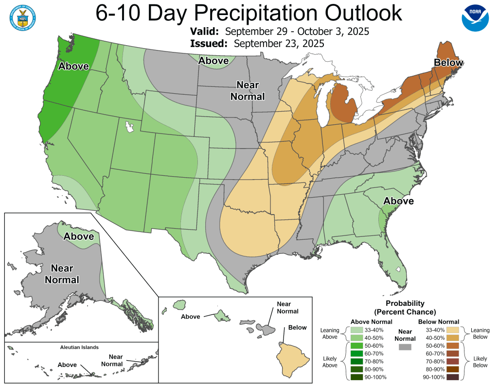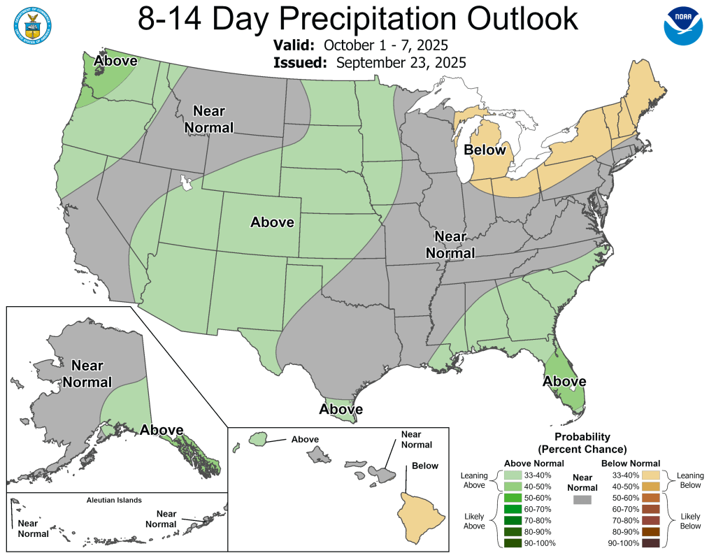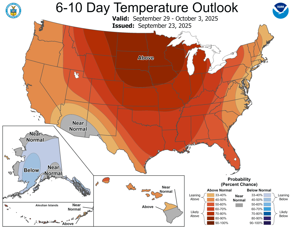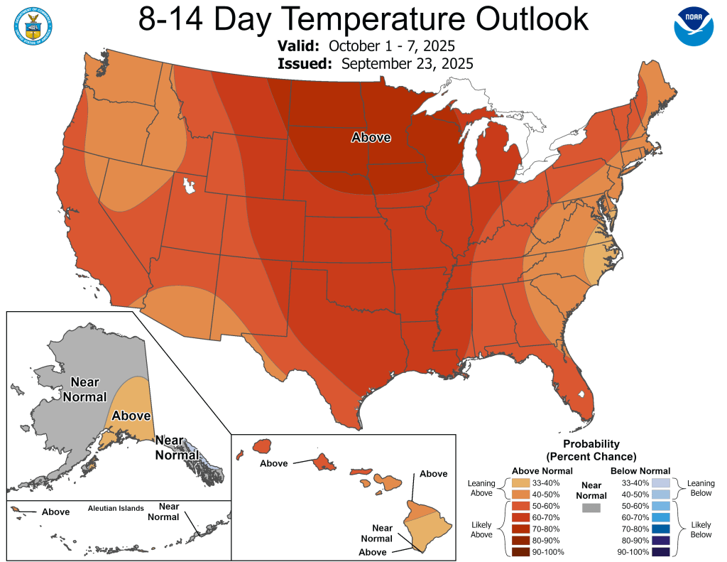 Both the 6-10 day and 8-14 day outlooks are currently calling for the above normal temperatures and below normal precipitation to continue.