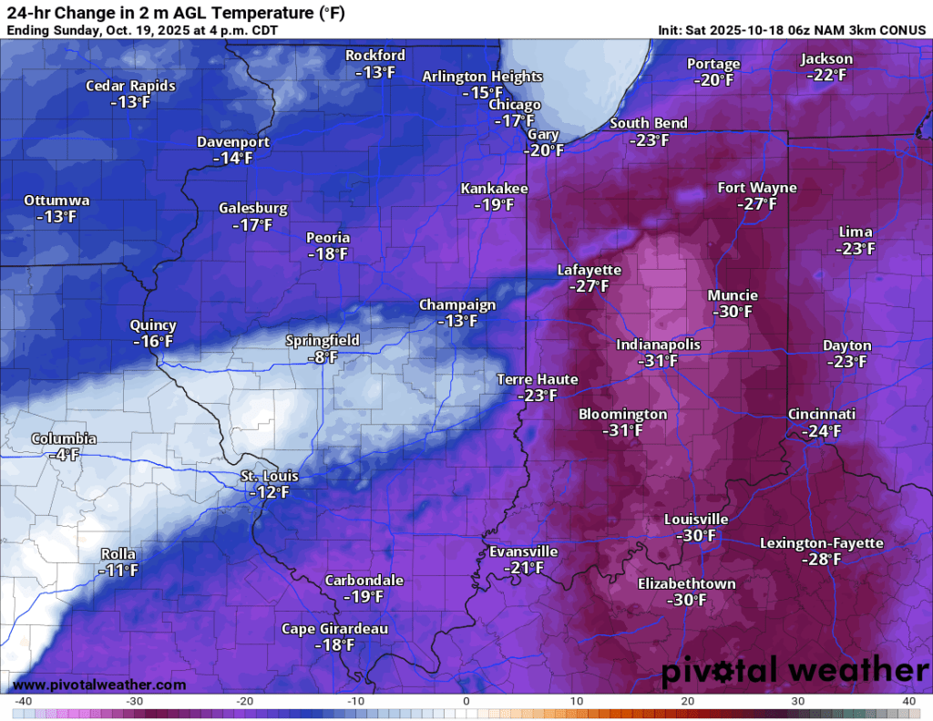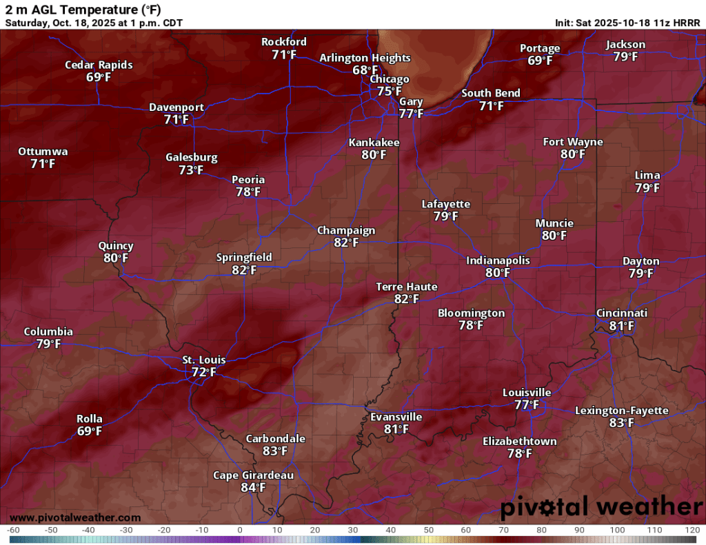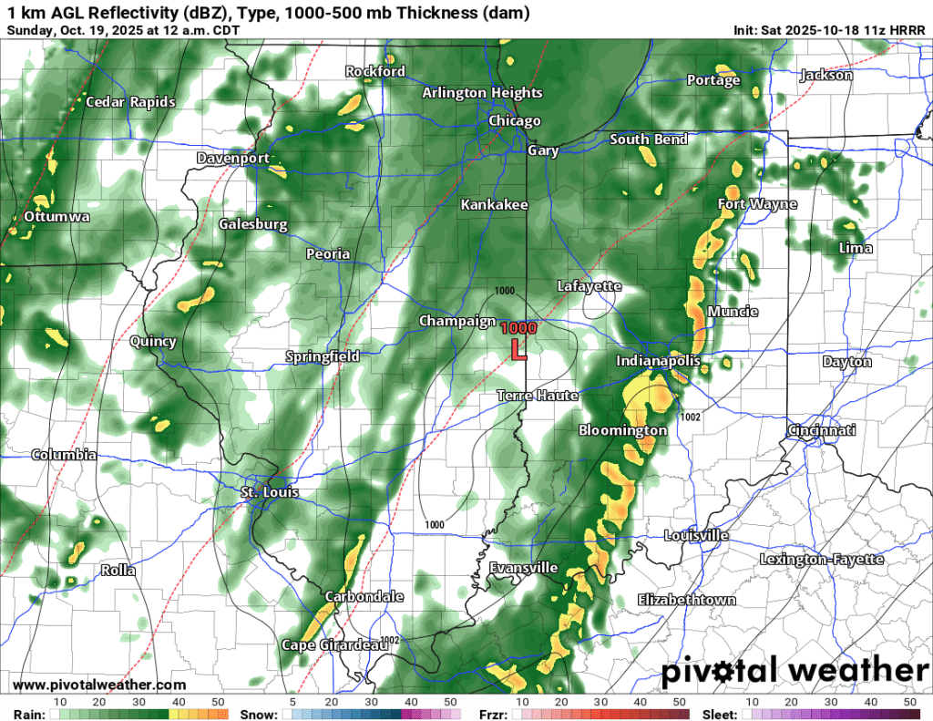 Rain coverage expands tonight and is expected to intensify. Rainfall rates could exceed 1”/hour at times. The bulk of our 1-2” expected total arrives overnight. The peak wind gusts are expected from early tomorrow morning through tomorrow afternoon as the cold front passes and shifts winds from the south to the northwest, ushering in much cooler air tomorrow.