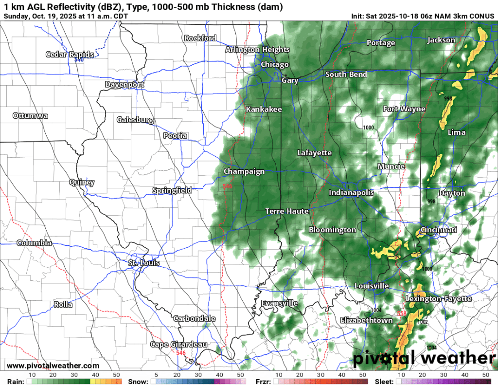 Rain should be scattered and relatively light late this morning through early evening. A few storms with gusty winds are possible, but severe weather is not expected. Wind will pick up as the day progresses, regardless of storm activity, with gusts from the south exceeding 25 mph at times. The wind will be southerly and warm today, helping temps climb into the low to mid 70s for possibly the last time this year.