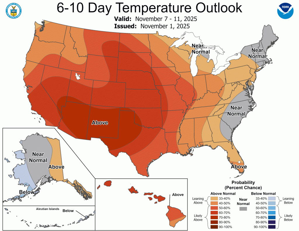 The overall theme remains warm (relatively speaking) and mainly dry. However, things are expected to shift more toward normal in terms of temperatures and above normal in terms of precipitation. We’ve already started that transition with temperatures and there are signals of a more consistent and more active storm track in our area as we head through November and into December.
