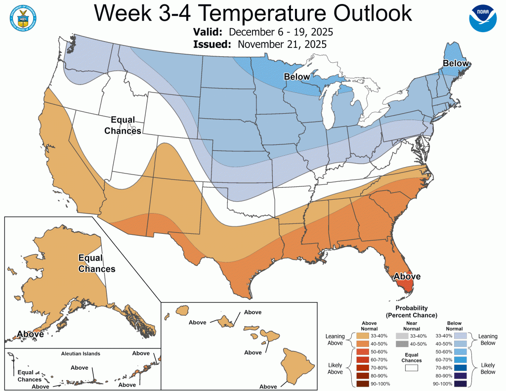 There is support for a colder than normal December from essentially every resource I can find. The CPC outlooks have remained consistent with the anomalous cold, and have shown consistent signals for above normal precipitation. I’m buying the cold at this point, but I’m not sure about the precipitation just yet. Moisture may be hard to come by, which could limit snow accumulation, but that will depend on each storm track. Regardless, the CPC outlooks have been consist with above normal precipitation, too.