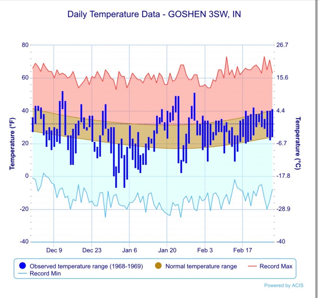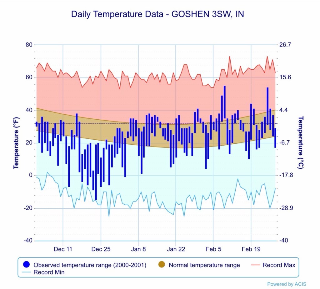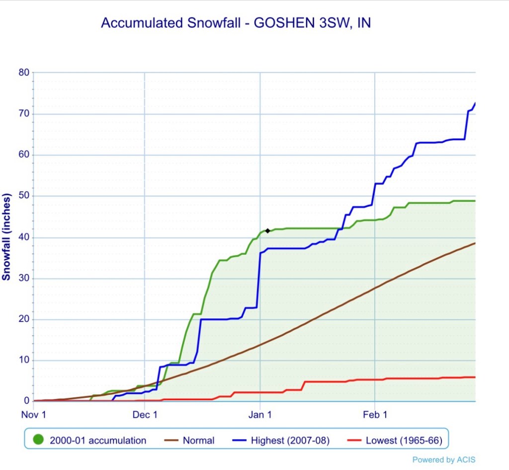 As you can see, the first half of the winter was well below normal and approached record lows on multiple occasions. The snow got started early that winter as well, and was well above normal, with most of the snow falling in December.