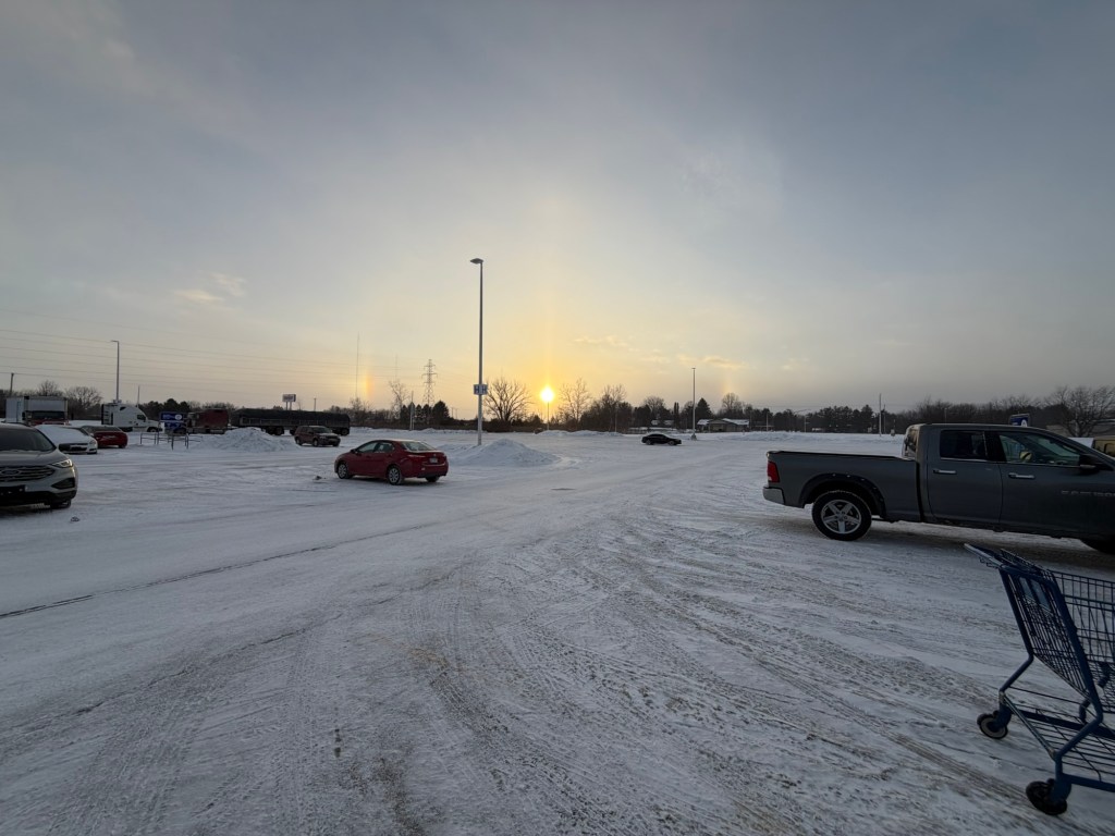 I also saw some awesome sun dogs in a parking lot. These form when ice crystals refract light and form countless tiny prisms in the sky, 22° to the left and right of the sun.