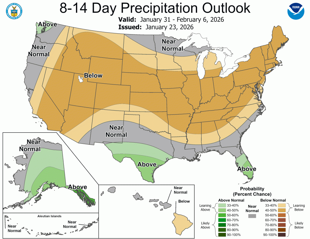 Looking a little farther down the road, in the 8-14 day range, the cold begins to lose its grip, and we inch closer to normal temperatures while probably remaining relatively quiet.