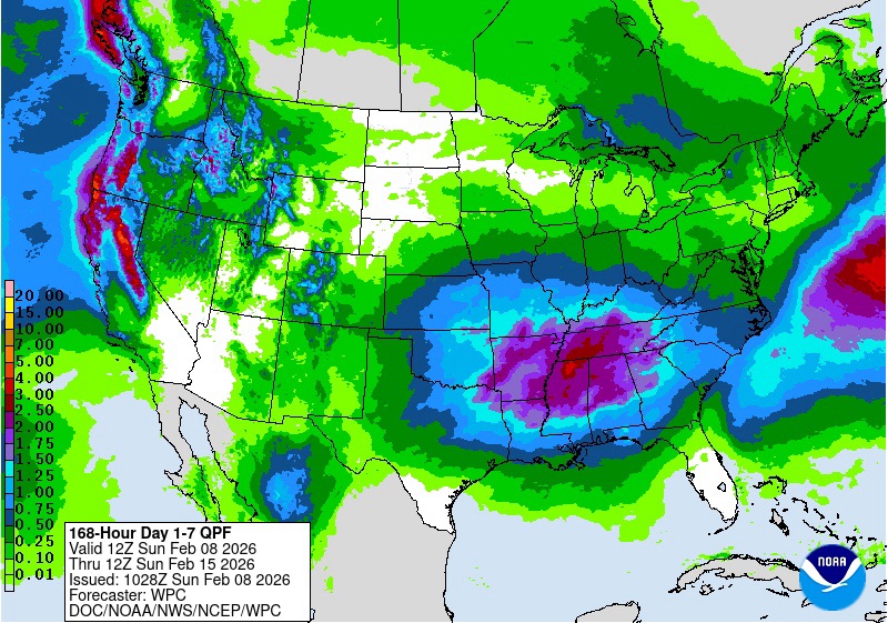 We could see a little more activity next weekend, and precipitation types will depend on when it falls (rain during the day, snow overnight). A large area of heavy precipitation near the Ohio River valley has been in the hazards outlook for a few days and is showing up in the forecast for next weekend. Most of the snow should be long gone down there by then, but parts of Kentucky and Tennessee, especially, could see a slightly higher risk of flooding due to previous snowmelt raising rivers before this rain.
