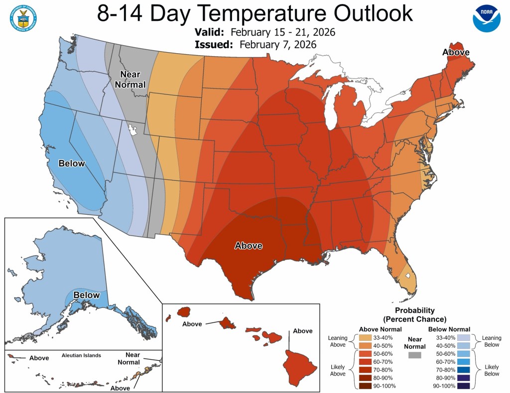 Beyond next weekend and into next week, normal to above-normal temperatures are expected to stick around.
